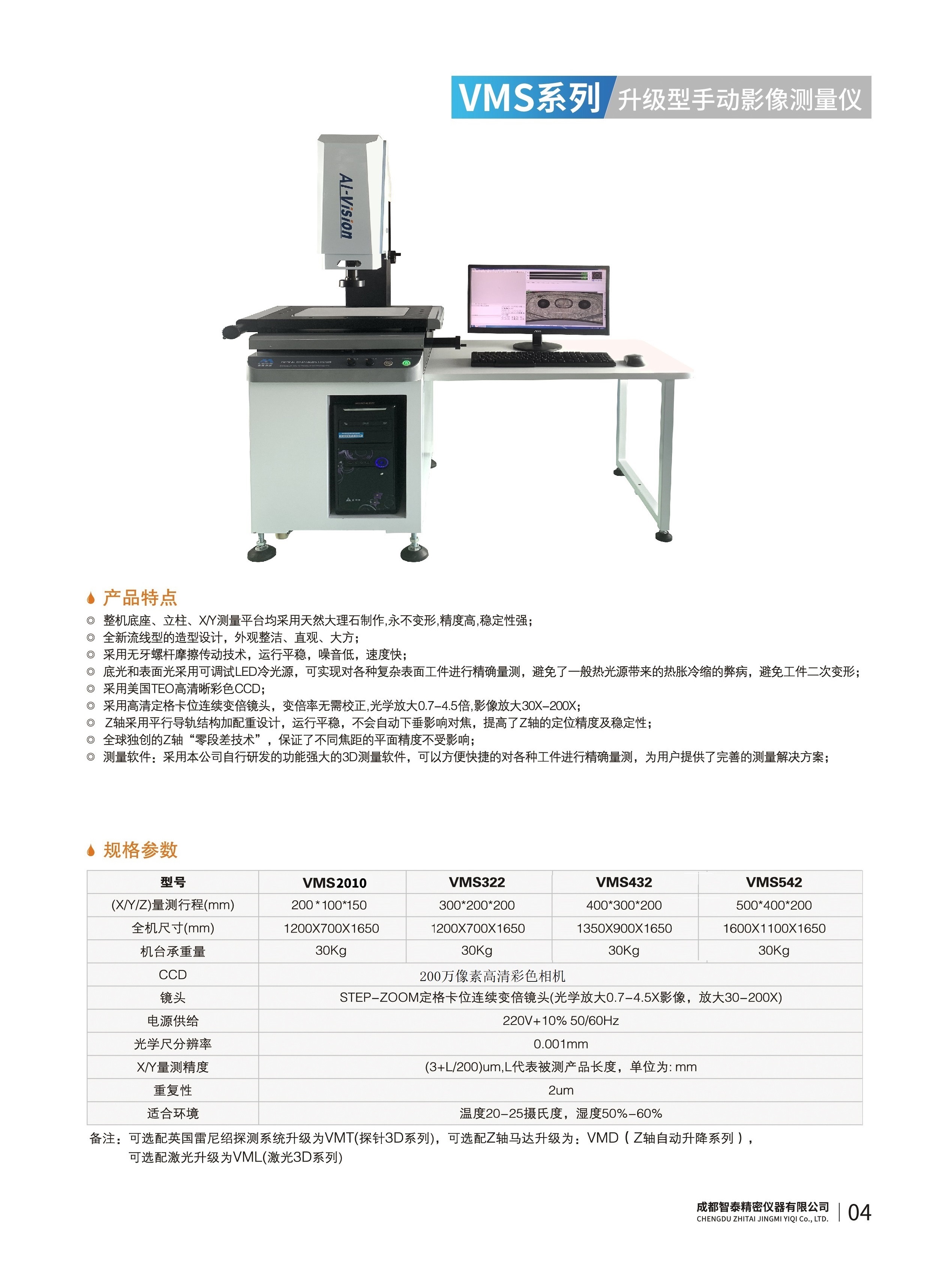 成都智泰精密儀器有限公司專注于精密測量儀器,人工智能,智能制造領(lǐng)域,專業(yè)從事智能視覺自動(dòng)化檢測解決方案的貿(mào)易型企業(yè)。公司成立于2011年,位于天府之國成都,現(xiàn)有行業(yè)精英十余人,辦公倉儲面積200余平米。 公司主要產(chǎn)品為精密光學(xué)影像測量儀,精密輪廓形狀測量儀,精密機(jī)器人定位系統(tǒng),精密智能視覺尺寸檢測儀器,精密表面缺陷智能檢測設(shè)備,工業(yè)工程特種機(jī)器人。 公司憑借過硬的技術(shù)實(shí)力和產(chǎn)品方案,率先進(jìn)入智能視覺自動(dòng)化檢測領(lǐng)域,推廣以精密智能視覺自動(dòng)化檢測為基礎(chǔ)的機(jī)器人自動(dòng)化應(yīng)用,公司不斷整合上下游的資源,擁有巨大的全產(chǎn)業(yè)鏈優(yōu)勢??蛻羧后w覆蓋了我國精密制造業(yè)的多數(shù)領(lǐng)域,包括航空、航天、軍工、汽車、新能源、光伏、食品,精密電子、精密機(jī)械、模具、PCB、LCD、五金、塑膠、醫(yī)療、教育、計(jì)量及科研院所等行業(yè)。 公司創(chuàng)新的產(chǎn)品能滿足生產(chǎn)與制造行業(yè)客戶的要求,訓(xùn)練有素的工程師能及時(shí)提供多種技術(shù)服務(wù),如解...
